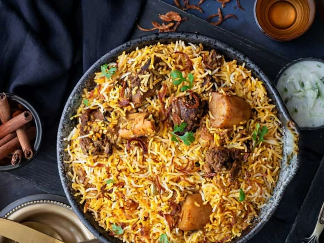Chicken Biryani, Qorma Kachalow, Sabzi Palak, Naan, Salaat (Afghan Salad), Firni (Afghan Custard Pudding)